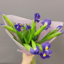Букет из синих ирисов и белых тюльпанов