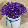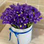 45 фиолетовых ирисов в шляпной коробке в Сибае