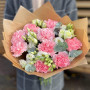 Букет из белой эустомы и розовых гвоздик в Сибае