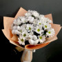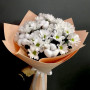 На фото букет из хризантем и хлопка. В составе: хризантема кустовая 5 шт, хлопок 3 шт, крафт-бумага 1 шт, атласная лента 1 шт, . Все цветы свежие и ароматные, букет красиво оформлен и отлично подходит для подарка. Доступна доставка цветов или самовывоз.