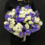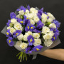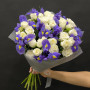 Букет из синих ириcов и белой кустовой розы в Сибае