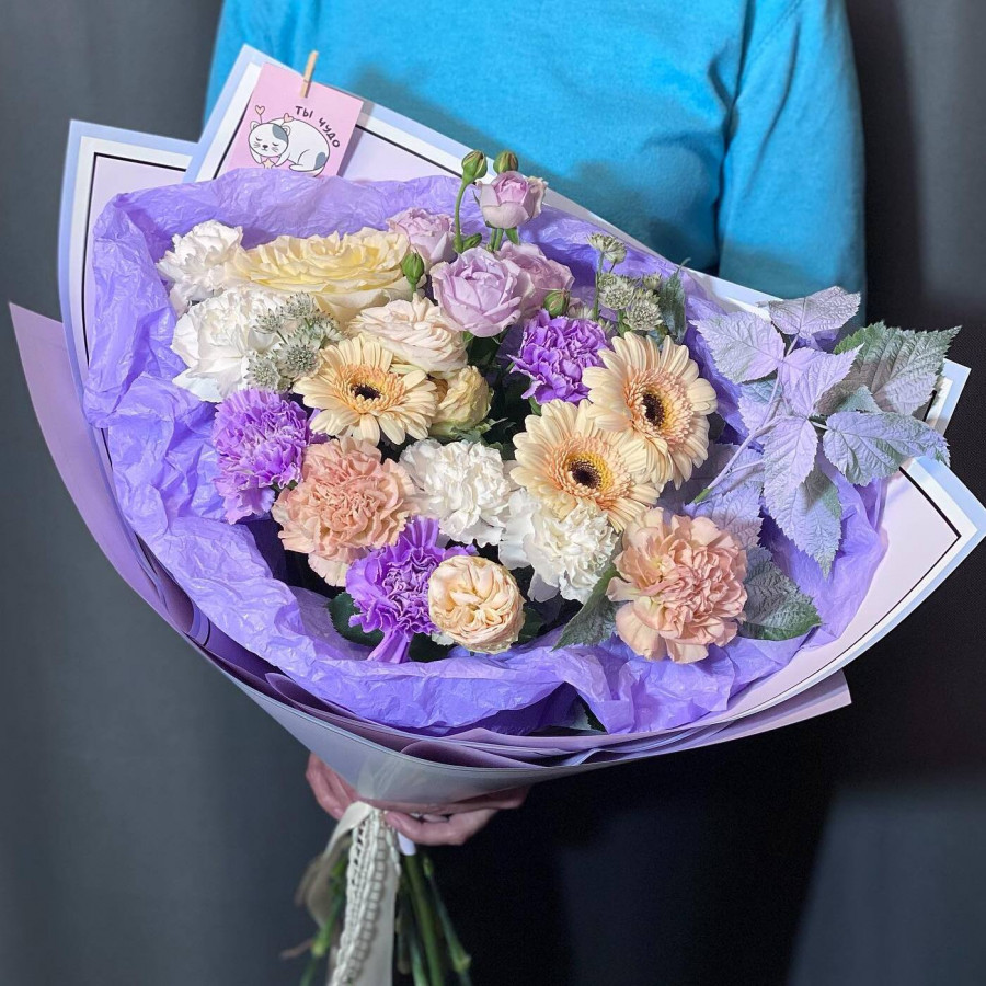 Перед выездом курьера пришлём фото свежесобранного букета, чтобы вы были спокойны